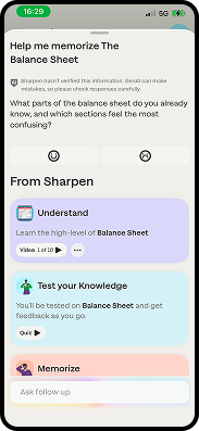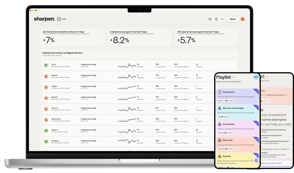 Ask Sharpen and Improve Leverage Sharpen's AI assistant and study recommendation engine |