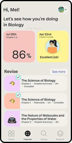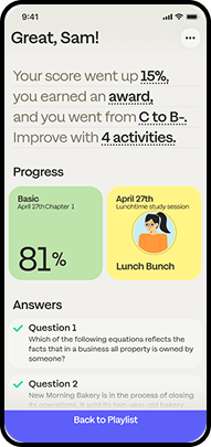 Sharpen’s exam prep app helps students master course concepts with bite-sized study activities, including videos, quizzes, flashcards, and more. As they study, Sharpen assesses progress and delivers personalized learning tips. Students can upgrade to the premium version, Sharpen Plus, with AI-powered tools and expanded access to the full library.